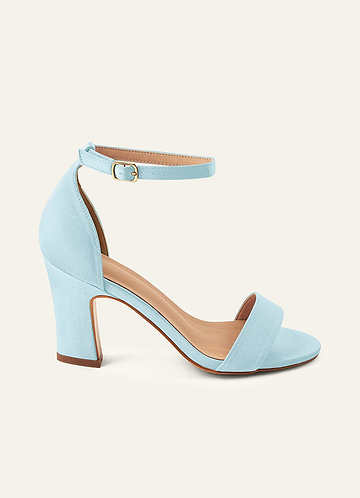azazie Matchande färg matt satin ankelrem Block häl sandaler