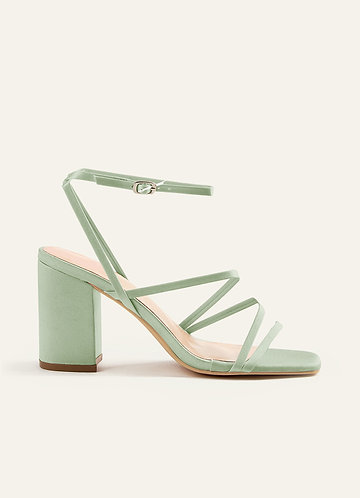 azazie Matchande färg matt satin ankelrem Block häl sandaler