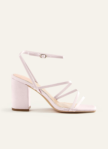 azazie Matchande färg matt satin ankelrem Block häl sandaler